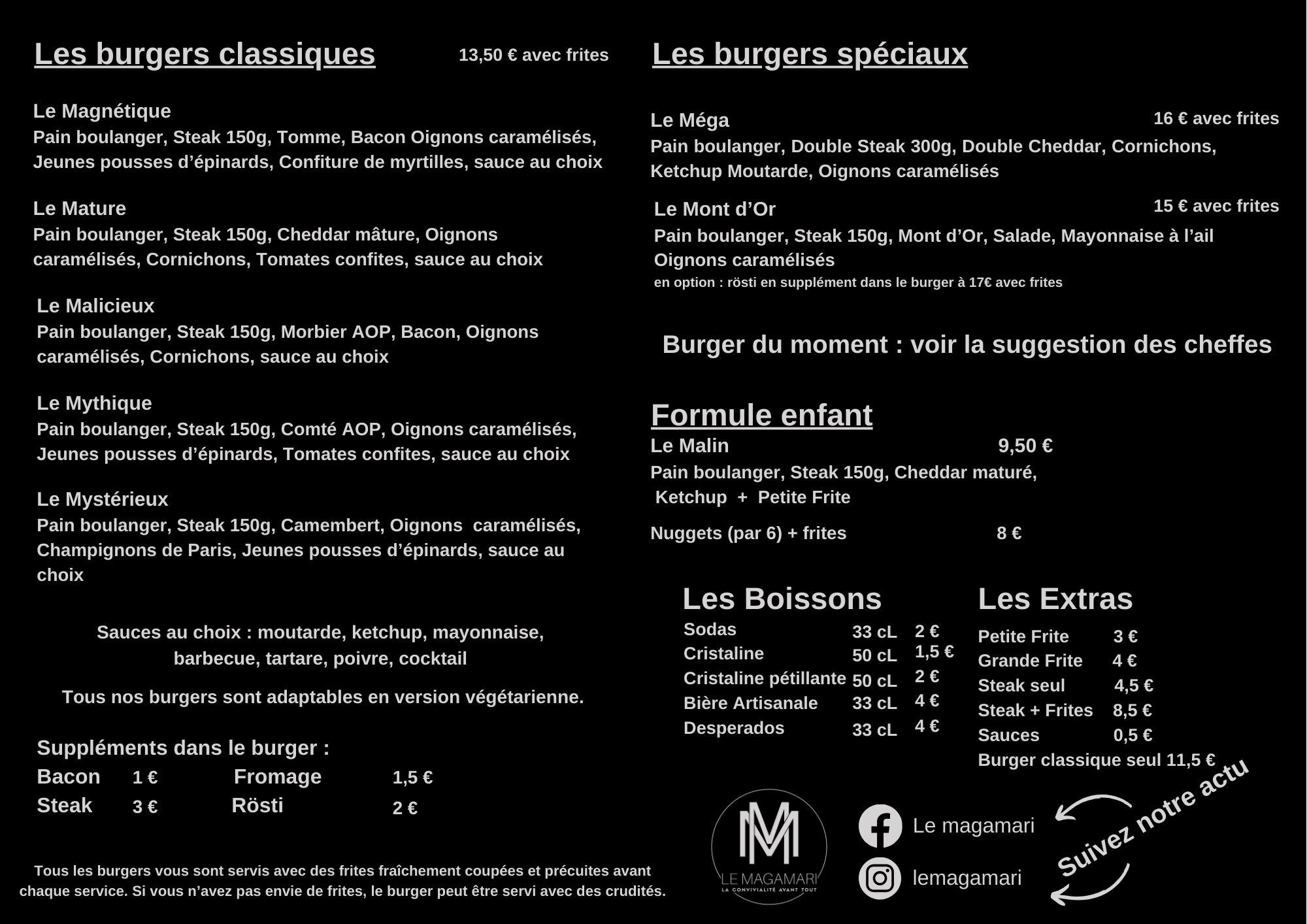 Le MythiqueLe MagnétiqueLe MystérieuxMalicieuxMont d'or + Galette Le Magamari se déplace pour vos événements privés avec différentes formules Les retours clients